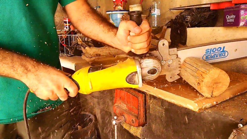 Из остатка небольшого листового металла вырезаем с помощью болгарки круг, обрабатываем края и к его центру вертикально привариваем небольшой отрезок арматуры или прутка. Этот круг должен свободно входить в отрезок круглой трубы заданной длины.