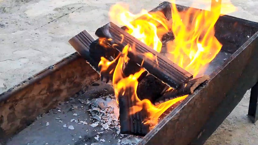 Протестируем брикеты в деле. Укладываем их вперемешку с растопкой снова в мангал и поджигаем. Через 15 минут растопка сгорает и начинают гореть брикеты, и это будет продолжаться 2 часа, после чего остается лишь маленькая горстка золы.