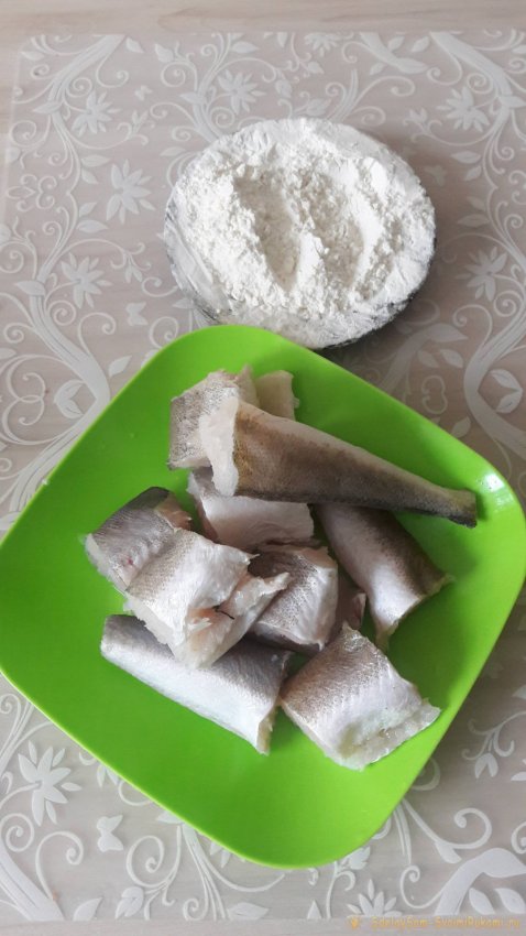 Теперь каждый кусочек рыбы нужно обвалять в муке и выкладывать на подготовленную сковородку с растительным маслом.