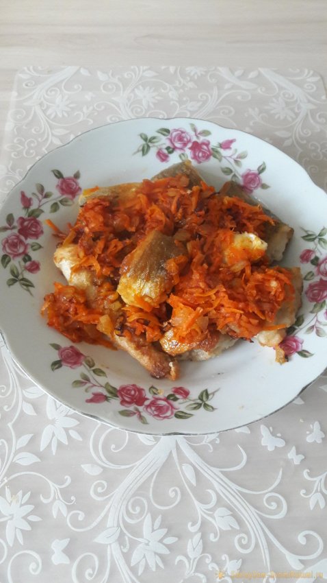Сверху рыбы выкладываем овощи и подаем к столу. Отлично сочетается такая рыба с картофельным пюре, но можно сварить на гарнир гречку или рис.