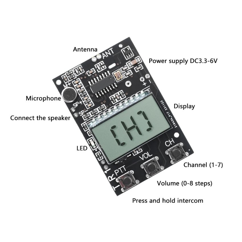 Чтобы собрать рацию, необходимо докупить динамик и источник питания или аккумулятор.
