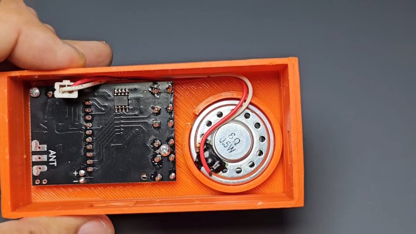 Устанавливаем плату и динамик, подключаем к выводам «SP-» и «SP+».