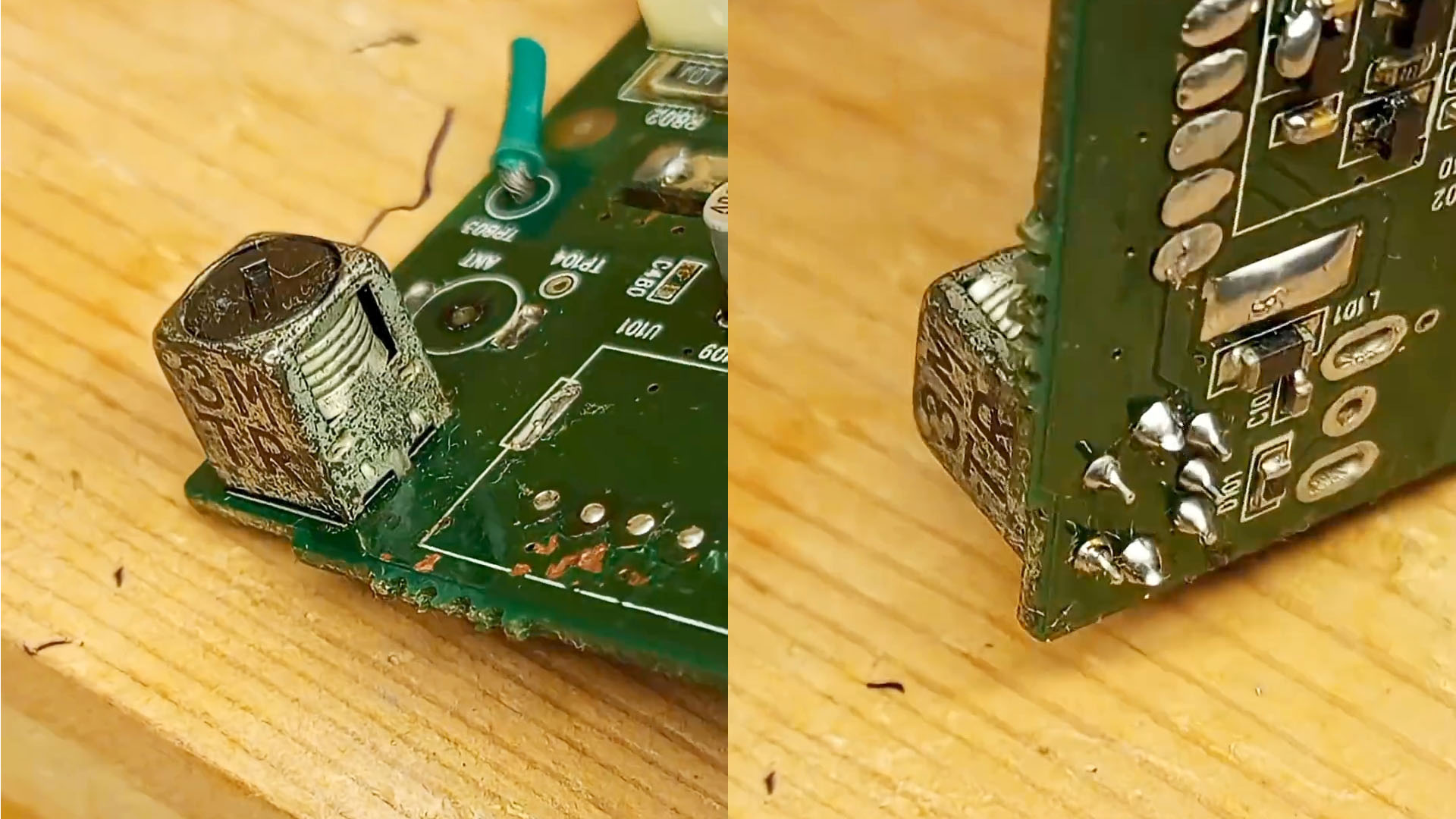 С обратной стороны платы тянем деталь пинцетом. Все с легкостью выходит.
