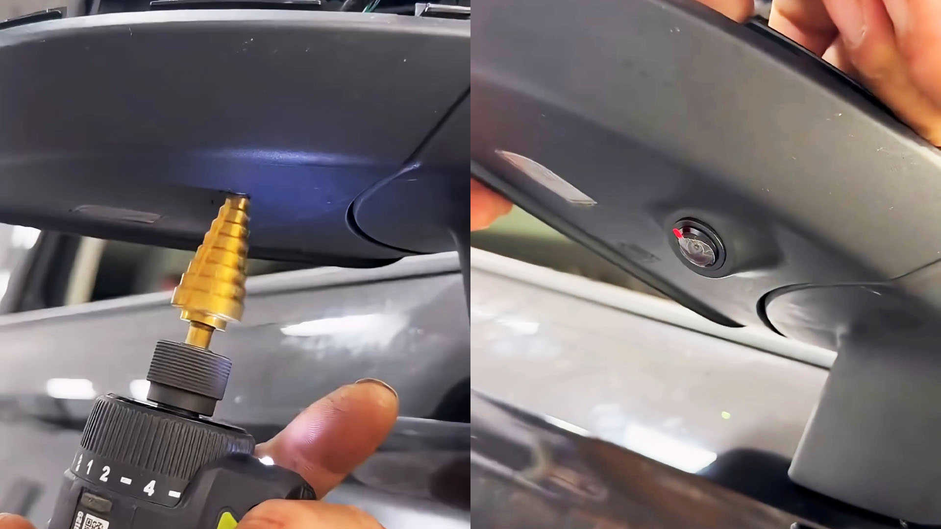 Формовка пластика под установку камеры в зеркало для обзора 360 градусов