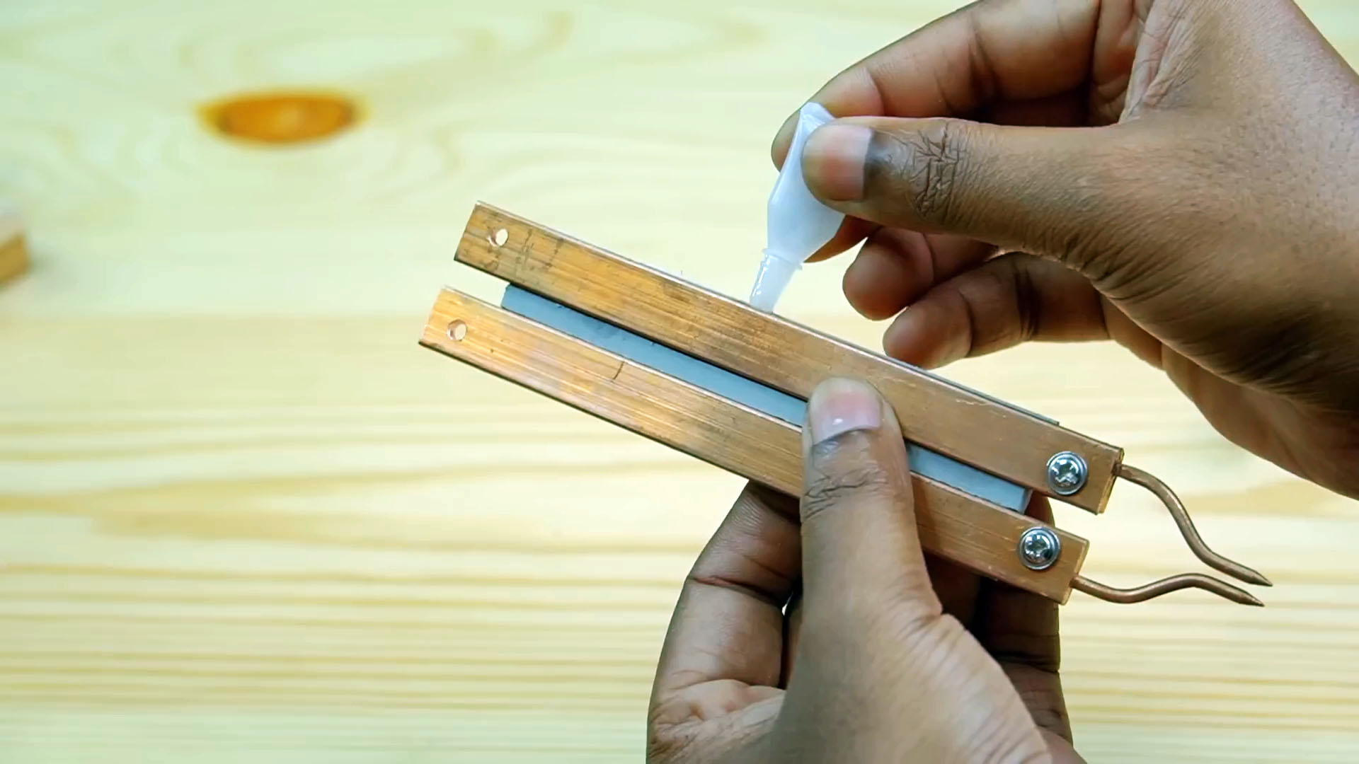 От медной шины отпиливаем 4 отреза: 2 по 7 см и 2 по 1 см.