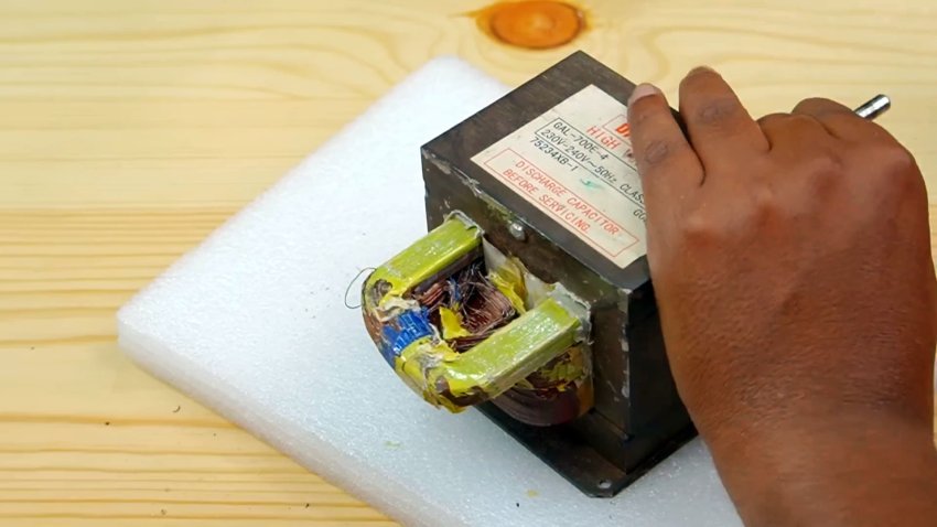 Первым делом необходимо вытащить трансформатор из микроволновой печи.