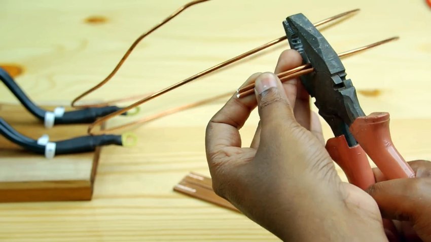 Из одножильного провода делаем электроды. Откусываем отрезки по 4 см.