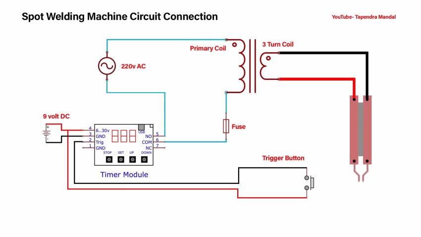 Данная конструкция аппарата для точечной сварки очень надежна и проста для повторения. За основу взят трансформатор от старой микроволновой печи. В роли таймера - китайский модуль. Дефицитных деталей нет, сварочную ручку можно, конечно, приобрести готовую, ну или сделать по процессу ниже.