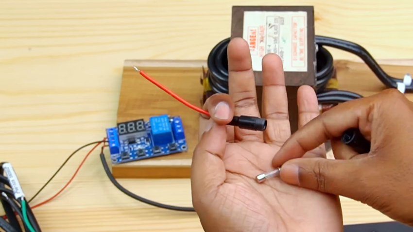 Переходим непосредственно к сборке аппарата согласно схемы. К модулю подключаем разъем питания.