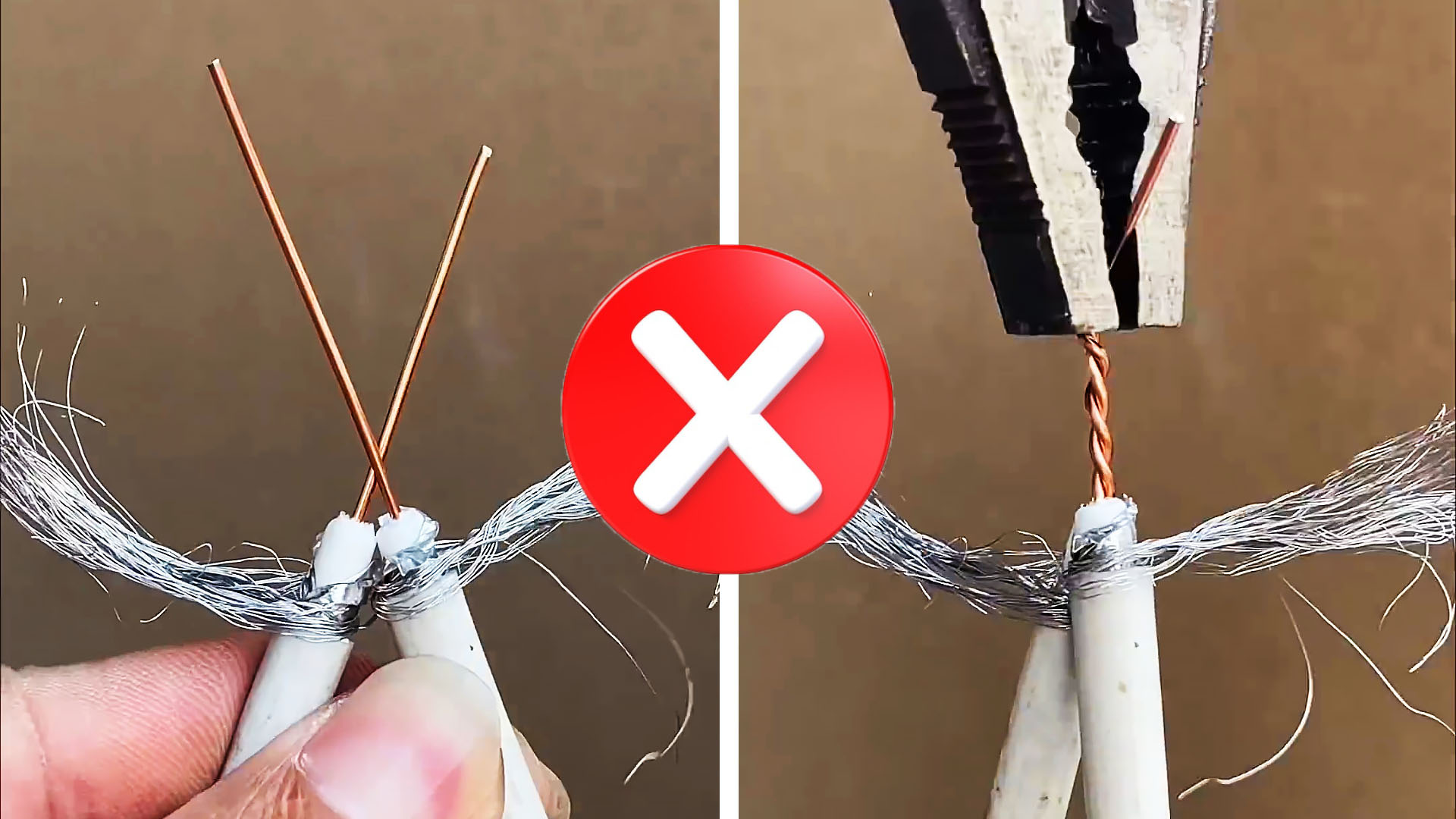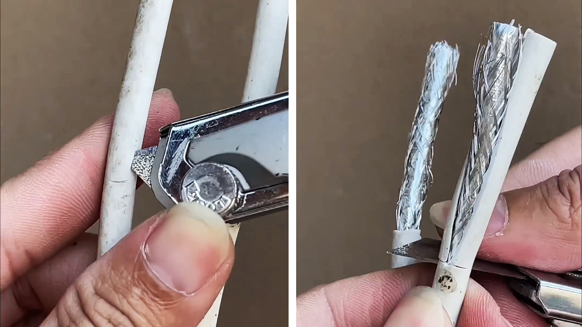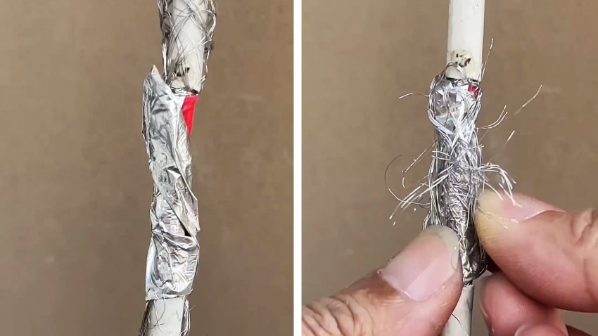 Если у вас нет в наличии специального соединителя для экранированных проводов, то данный полезный совет подойдет как нельзя кстати. При помощи нехитрого способа можно надежно соединить телевизионный кабель без пайки и спец. муфты. Вам потребуется только изолента, канцелярский нож и плоскогубцы.