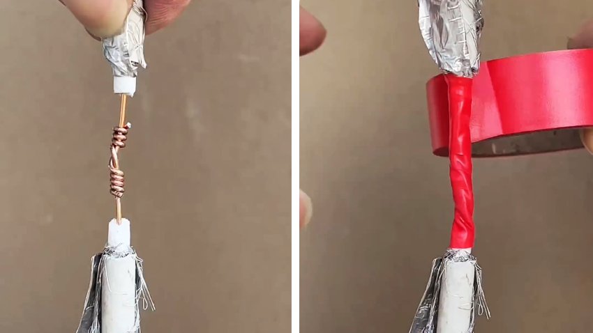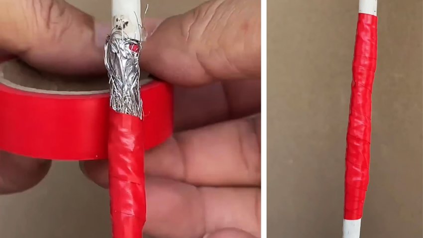 Фиксируем это всё дело изолентой, плотно проматывая в 2-3 слоя.