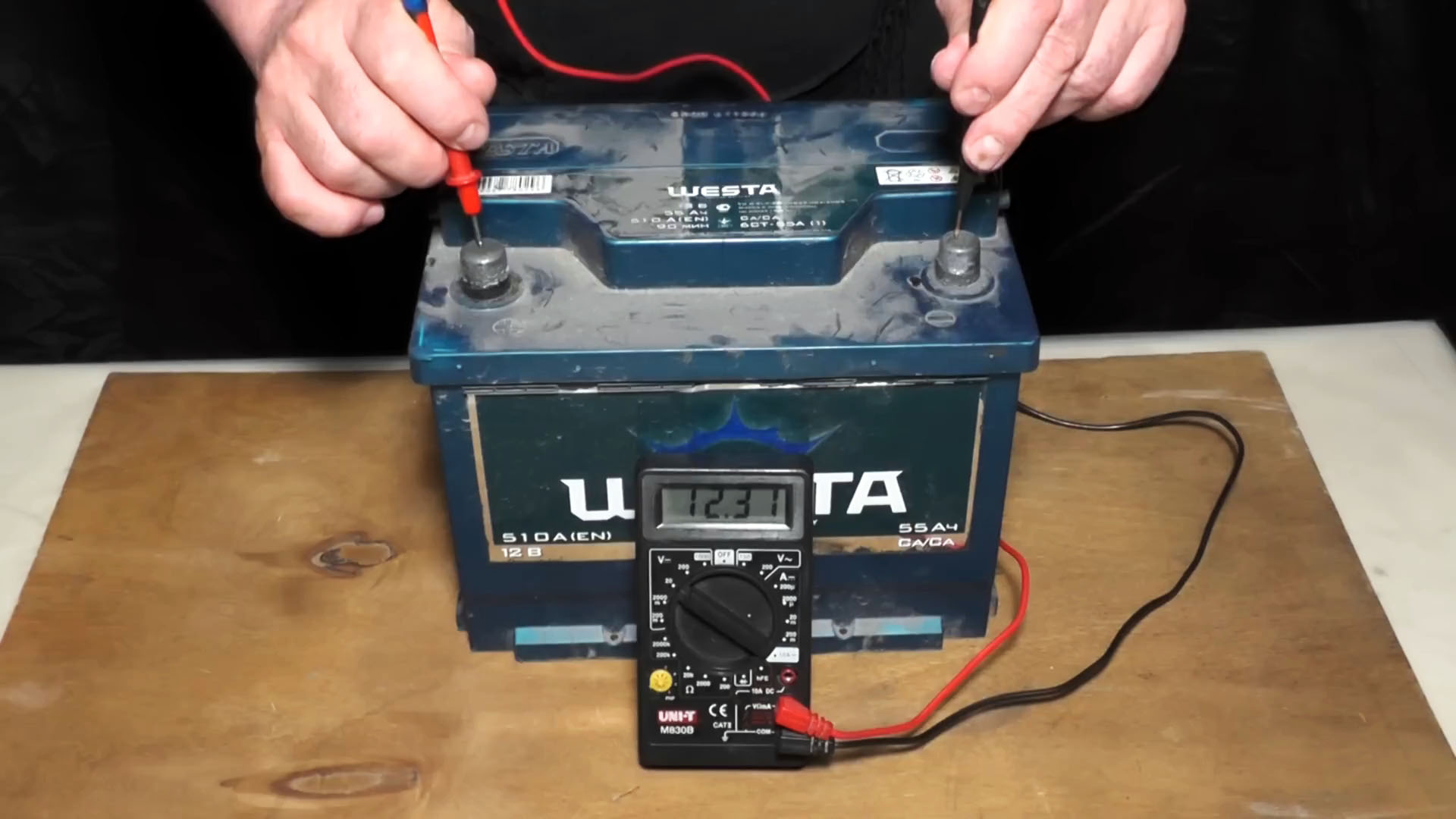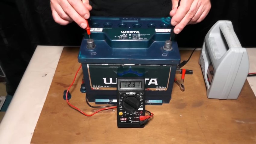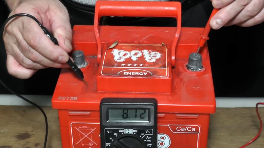 Начнем с измерения напряжения. На экране я вижу 12,3 В. Это неплохое состояние, хотя 12,7 В было бы лучше.