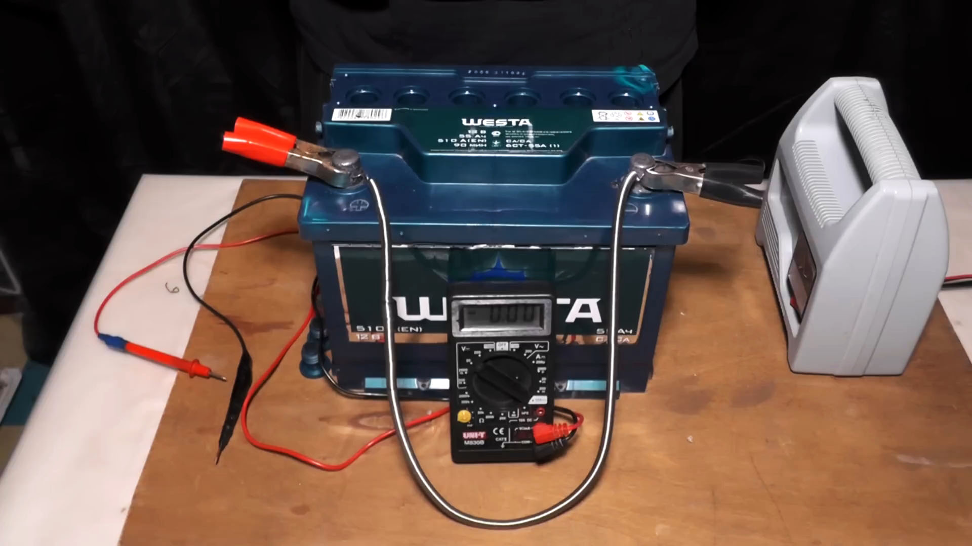 Пришло время зарядки аккумулятора. Подключил клеммы, напряжение на вольтметре немного упала. Это неизбежно, так как я разбавил электролит водой.