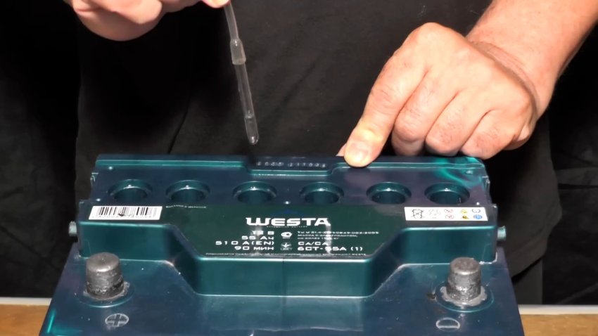 Для измерения уровня электролита нужна стеклянная трубка. В наших условиях можно использовать пипетку или трубку от системы капельницы, нагретую до размягчения. Уровень электролита должен быть от 10 до 15 мм. Если уровень недостаточен, лучше всего поднять его дистиллированной водой. Кислоту доливать не спешите.