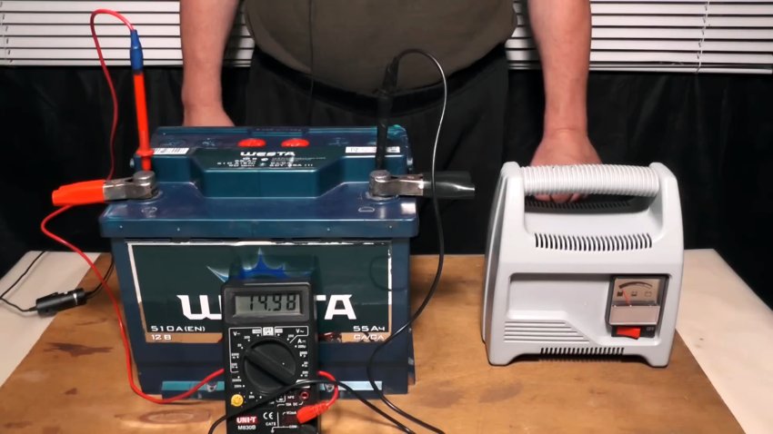 Теперь поговорим о том, каким током нужно заряжать аккумулятор. Для аккумулятора на 55 А я рекомендую заряжать минимальным током, чем меньше, тем лучше. Включите напряжение и постепенно увеличивайте его с помощью реостата. Начните с 2 А, но со временем ток должен снизиться сам собой. Если аккумулятор активно берет заряд, значит, он в неплохом рабочем состоянии.