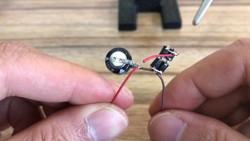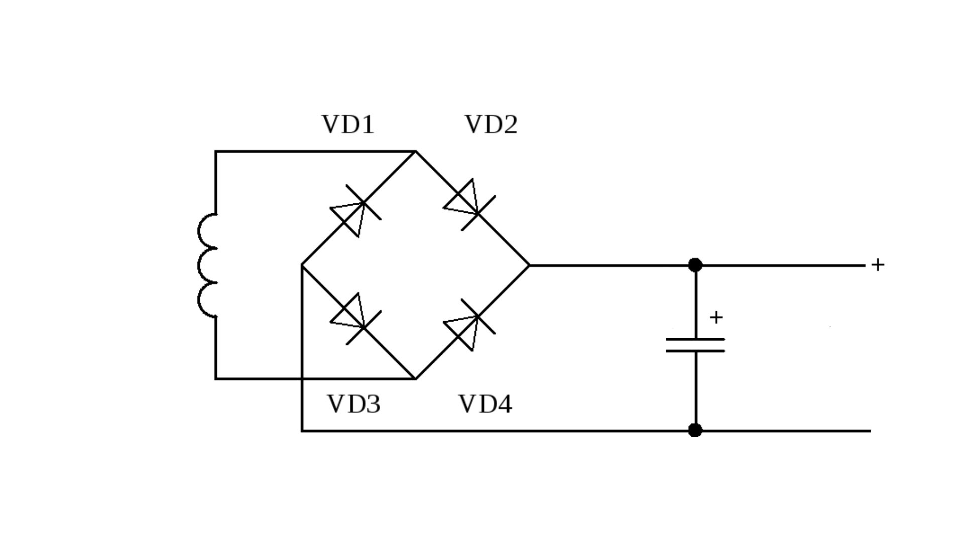 Теперь необходимо собрать выпрямитель с ионистором. Понадобится: диоды любые SMD, ионистор (он же суперконденсатор) на 5,5 В 0,22 Ф. Схема классическая, за исключением наличия суперконденсатора.