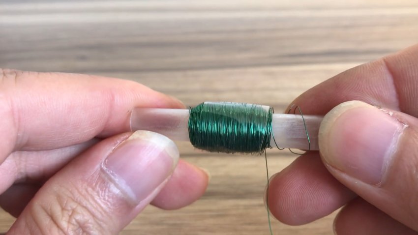Наматываем катушку. Для этого хорошо подойдет электрическая отвертка: надеваем трубку на патрон отвертки, производим намотку проволоки.