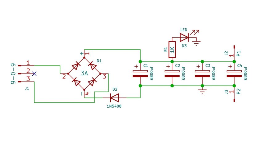 Сема устройства проста. По сути это обычный выпрямитель, но с большей емкостью конденсаторов.