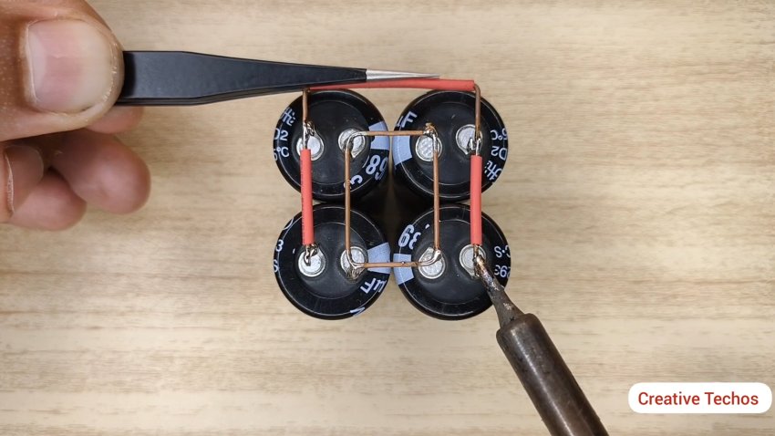 Первым делом спаиваем параллельно все 4 конденсатора.