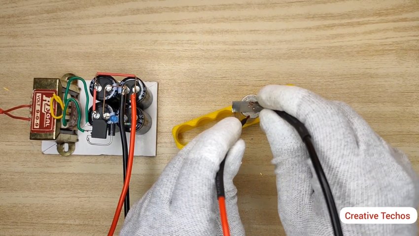 К первичной обмотке трансформатора припаиваем сетевую вилку с проводом.