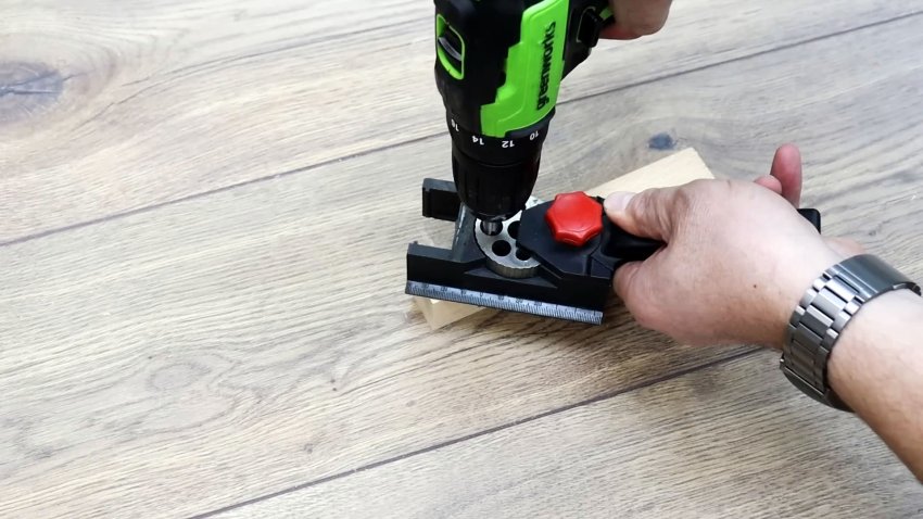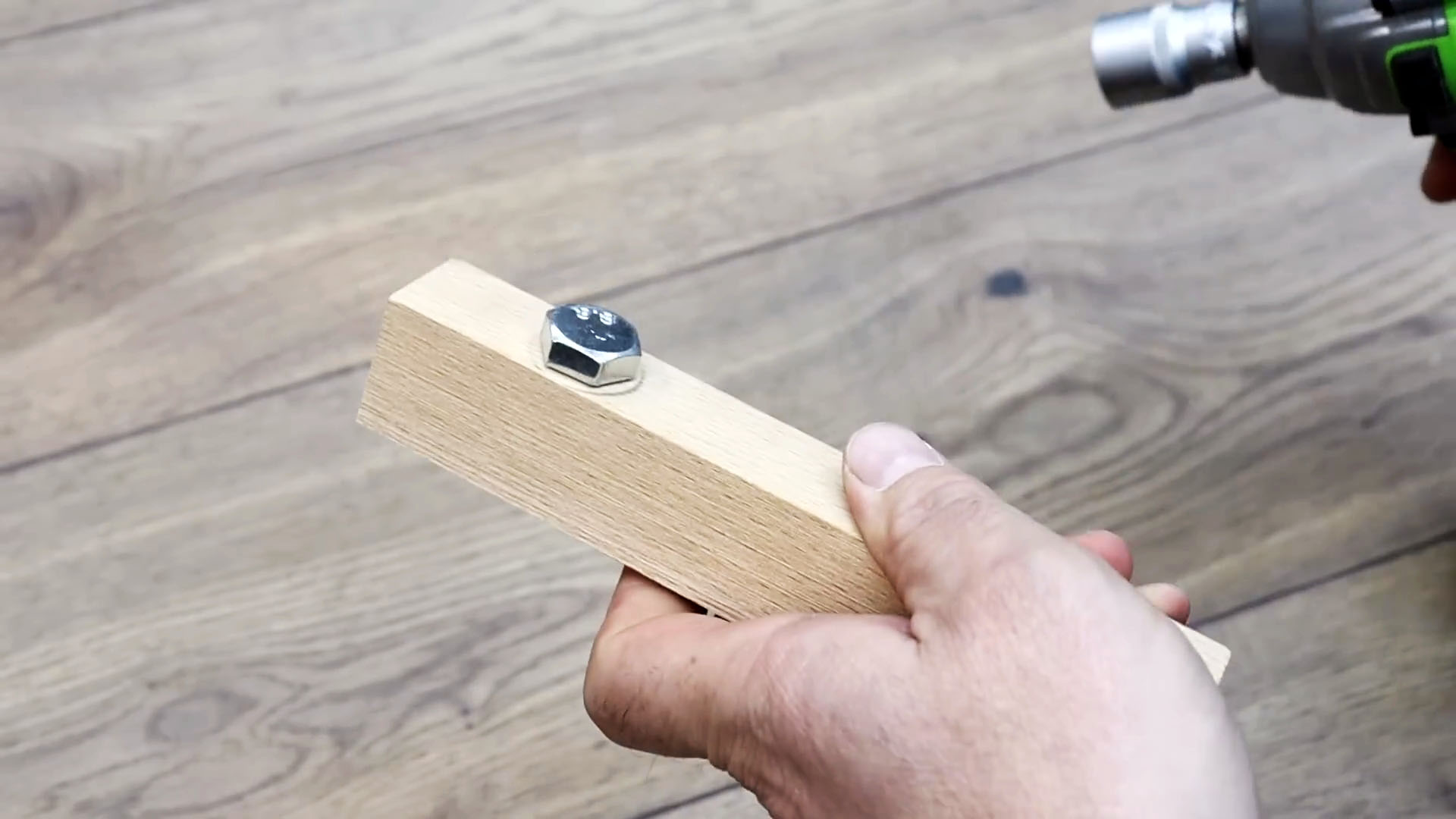Необходимо взять деревянный брусок, просверлить в нем глухое отверстие при помощи сверла и кондуктора. Диаметр сверла необходимо выбрать немного меньше чем диаметр болта.