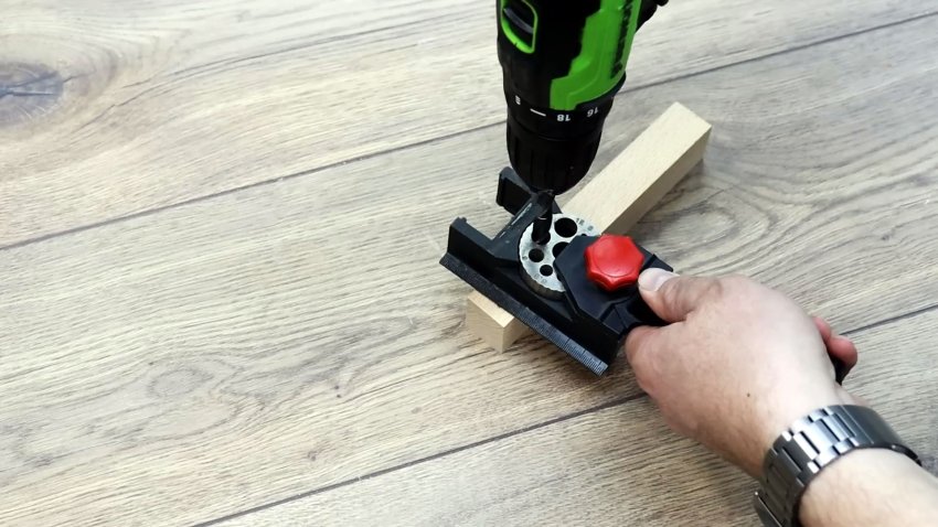 Такой самодельный, деревянный кондуктор значительно добавит точности и позволит ровно просверлить болт насквозь.