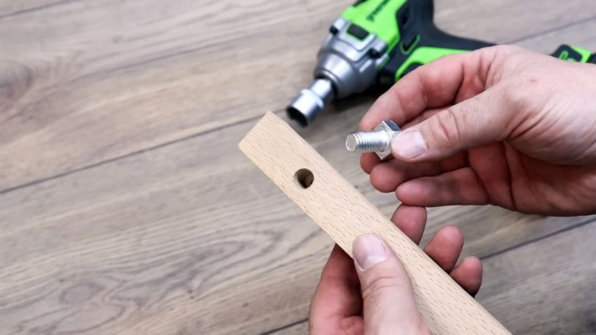 Далее необходимо метчиком нарезать в дереве резьбу под болт.
