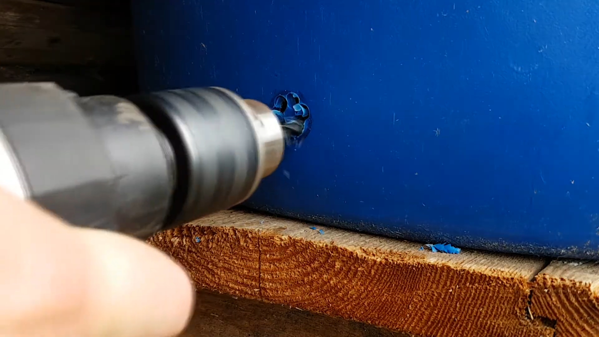 Затем этим же сверлом расширьте отверстия. Периодически проверяйте, чтобы сверло спокойно заходило внутрь, но не полностью — только до уровня резьбы.