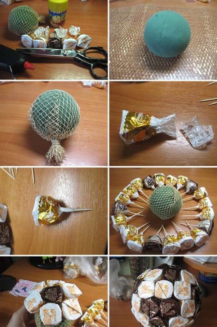 Как видите, сладкие подарки очень легко изготавливать. Главное, к этому занятию приложить свою душу и тогда должно все получиться.