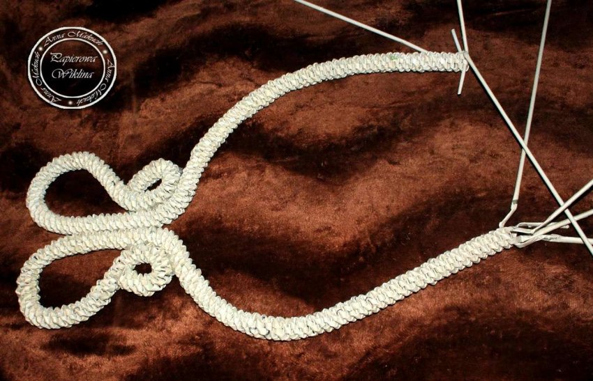 Следующий этап — сплести 2 рулона около 80 см в длину. Из них мы сформируем хвост, а затем голову лебедя.