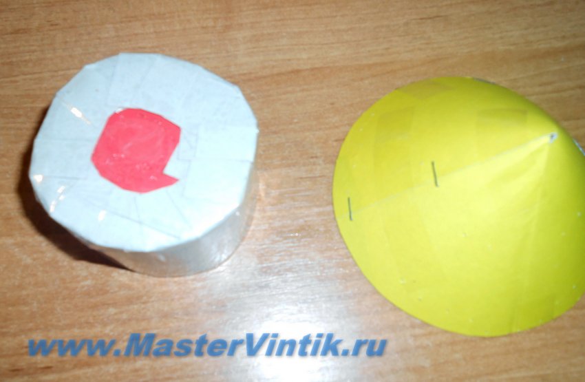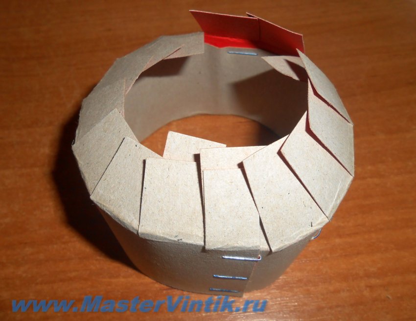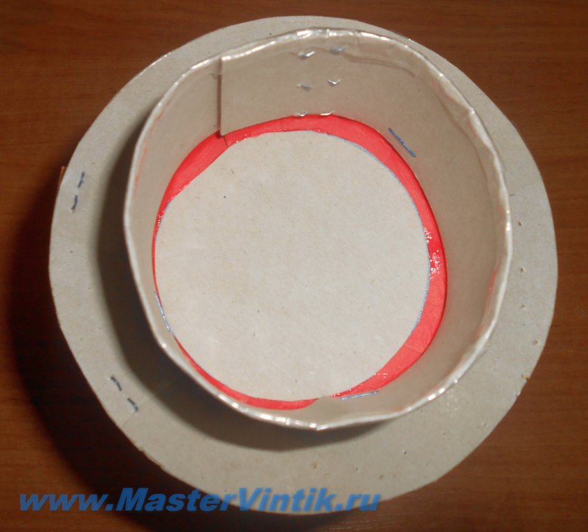 Внутренняя часть крыши изготовлена из картона, сложенного в кольцо и закрыто кружочком.