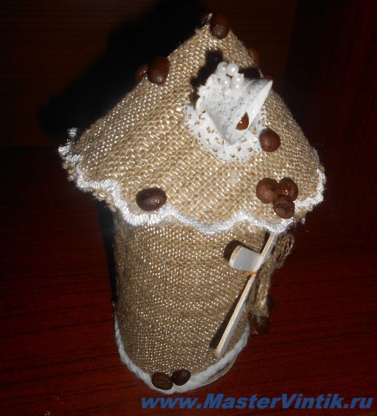 Украсила домик кофейными зёрнами. Вот и готов чудесный чайный домик!