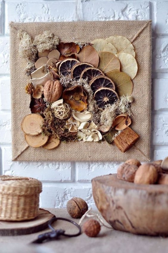 Как видно на многочисленных фото осенних поделок, размещённых в Интернете, идей для интерьерных аксессуаров из природных материалов придумано много. Рассмотрим наиболее популярные.