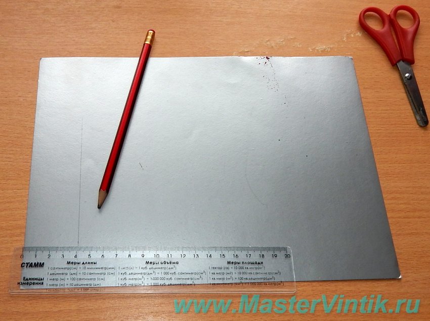 Шаг 1. Берем цветной лист А4 картона и рисуем на нём карандашом линии лабиринта, по которым потом будут приклеиваться перегородки. Линии рисуем на одинаковом расстоянии друг от друга и от края. Я взяла 4 см.