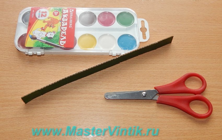 Шаг 2. Для того, чтобы перегородки были потолще и устойчивее, берём гофрированный картон от упаковки, ящика… Нарезаем полоски одинаковой толщины. Разукрашиваем полоски разноцветными красками.