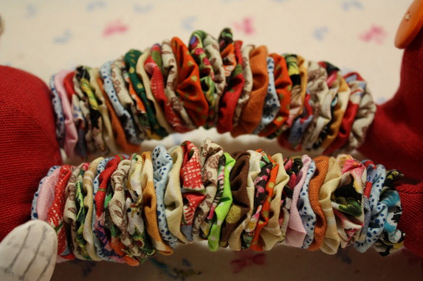 А вообще — подойдет абсолютно все, что есть: обрезки, старые ненужные шмотки, ткани непонятных расцветок, которые трудно куда-то приспособить.