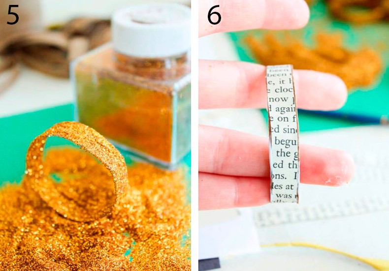 - Проделайте декорирование блёстками либо страницами книг с каждой деталью.