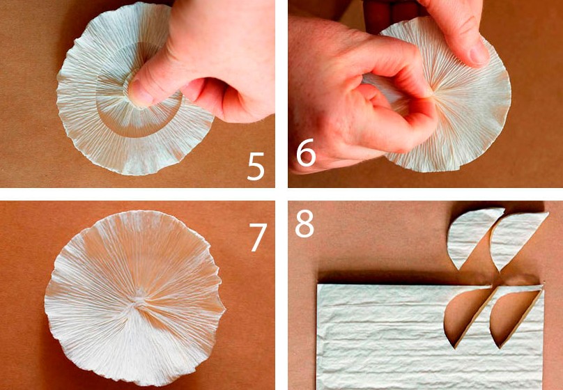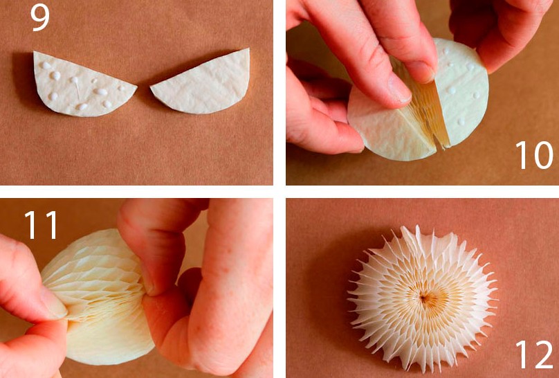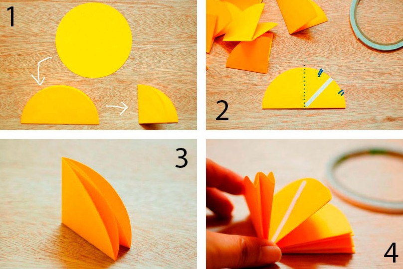 - Сложите каждый кружок 2 раза пополам.