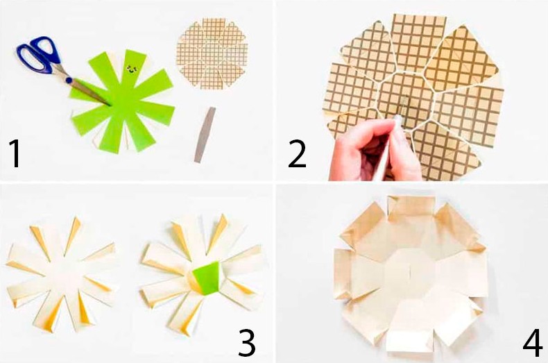 - Сложите коробку и крышку, как показано на фото-инструкции.