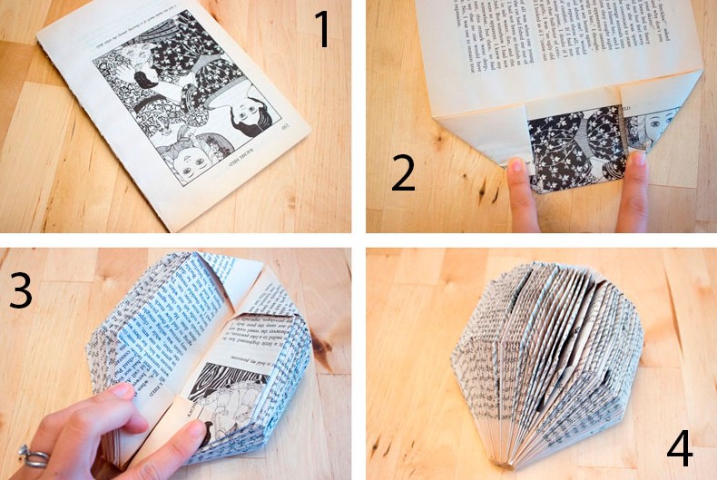 - Загните углы страниц, поменяв их направление на второй половине книге.