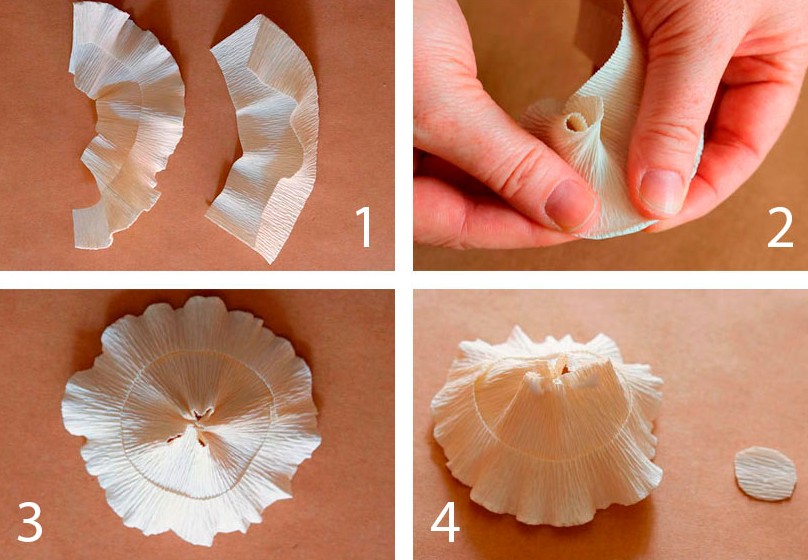 - Вырежьте маленький кружочек гофробумаги и приклейте его в центр, закрыв отверстие шляпки.