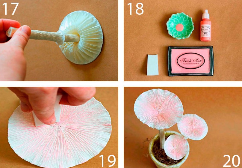 Грибы из гофрированной бумаги