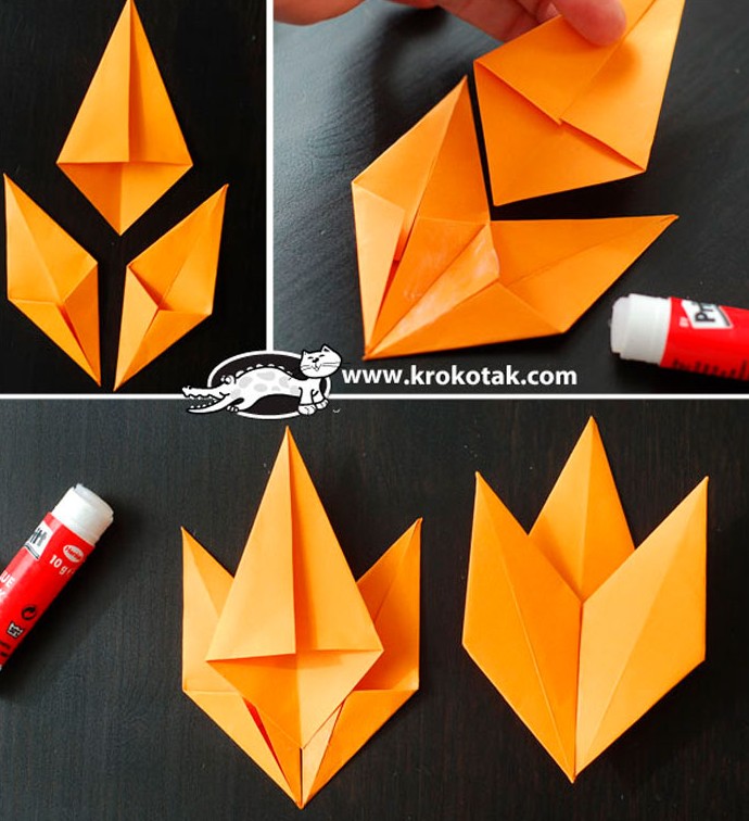 - Склейте между собой 2 ромба и в центре один треугольник.