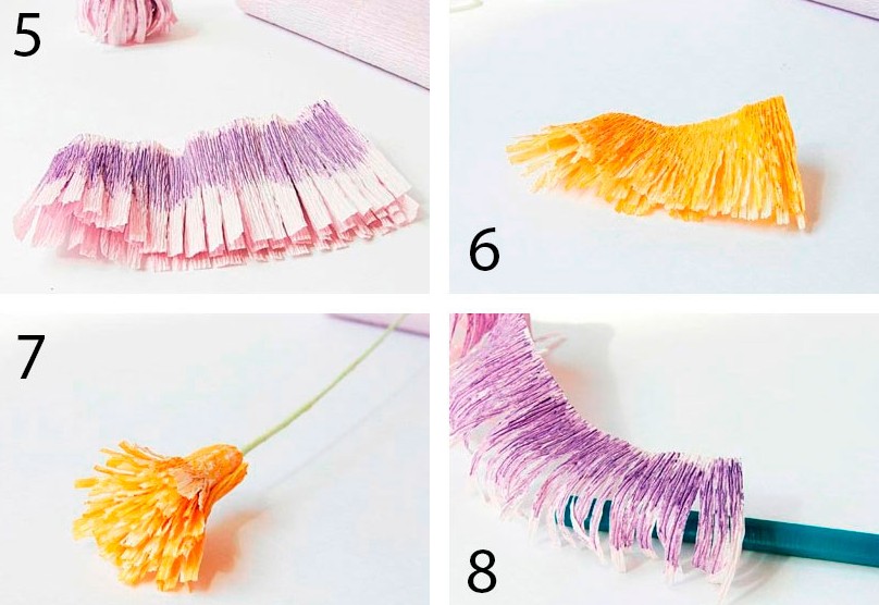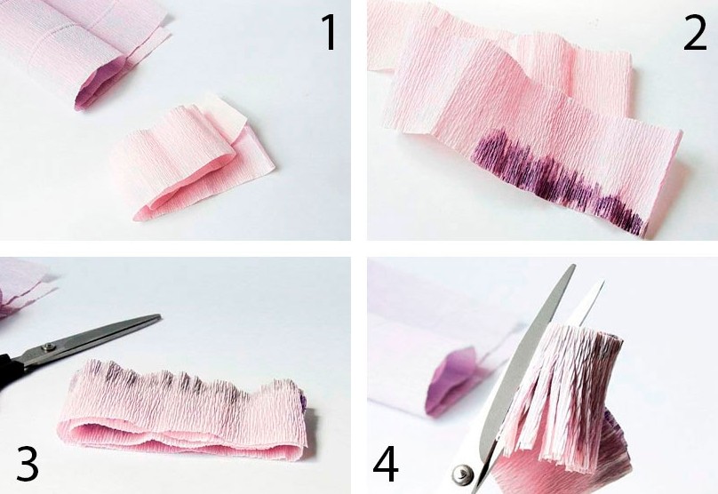 - Подготовьте полосу гофрированной бумаги лилового цвета шириной 4 см.
