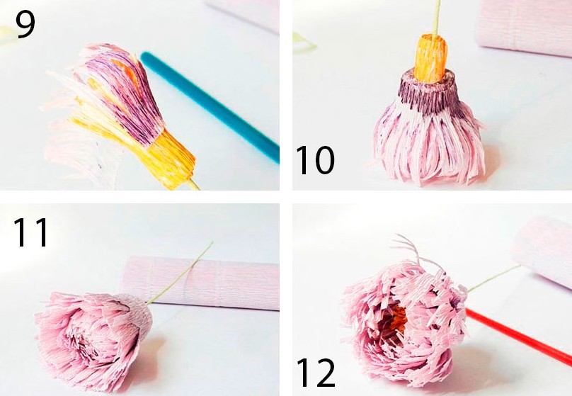 - Подкрутите концы лепестков и расправьте серединку.