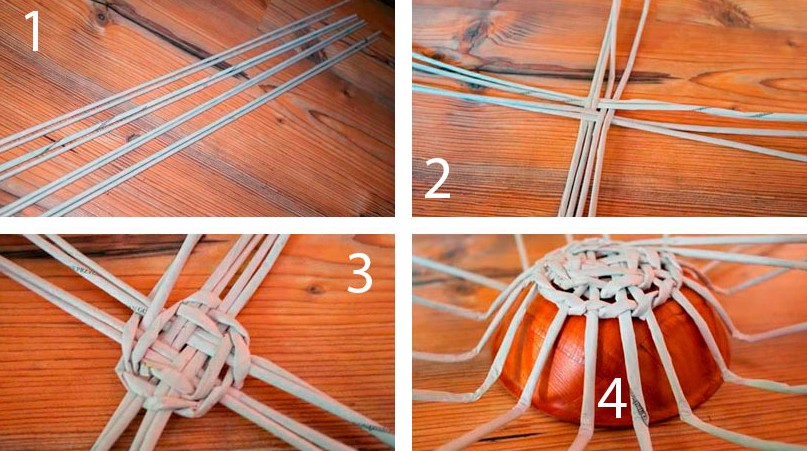 - Выложите 4 пары трубочек крест накрест, как показано на изображении 2.