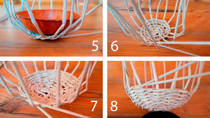 - Возьмите миску, переверните её вверх дном и оплетите, сформировав шляпку грибка.