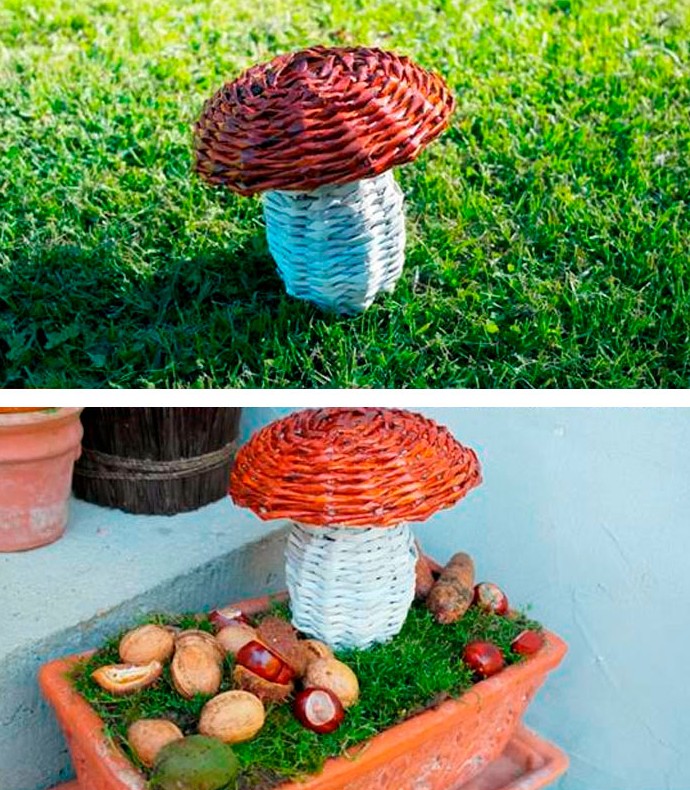 Гриб из газетных трубочек готов!