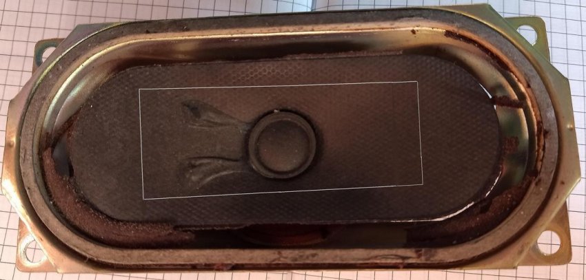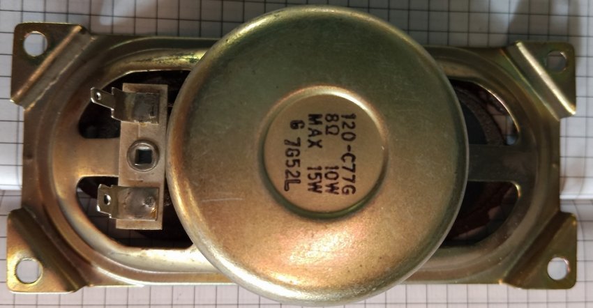 Необходимо подобрать небольшой старый динамик, который крепим в центре сетки. У меня это динамик от импортного телевизора на 8 Ом.
