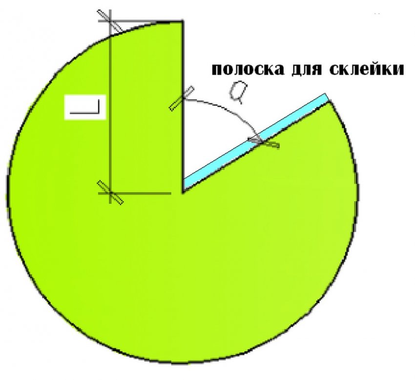 В интернете находим онлайн калькулятор развёртки конуса, подставляем необходимые цифры высоты и диаметра основания, вычерчиваем на ватмане круг с разметкой вырезаемого сектора. Не забываем оставить полоску для склейки шириной 1-1, 5 см.
